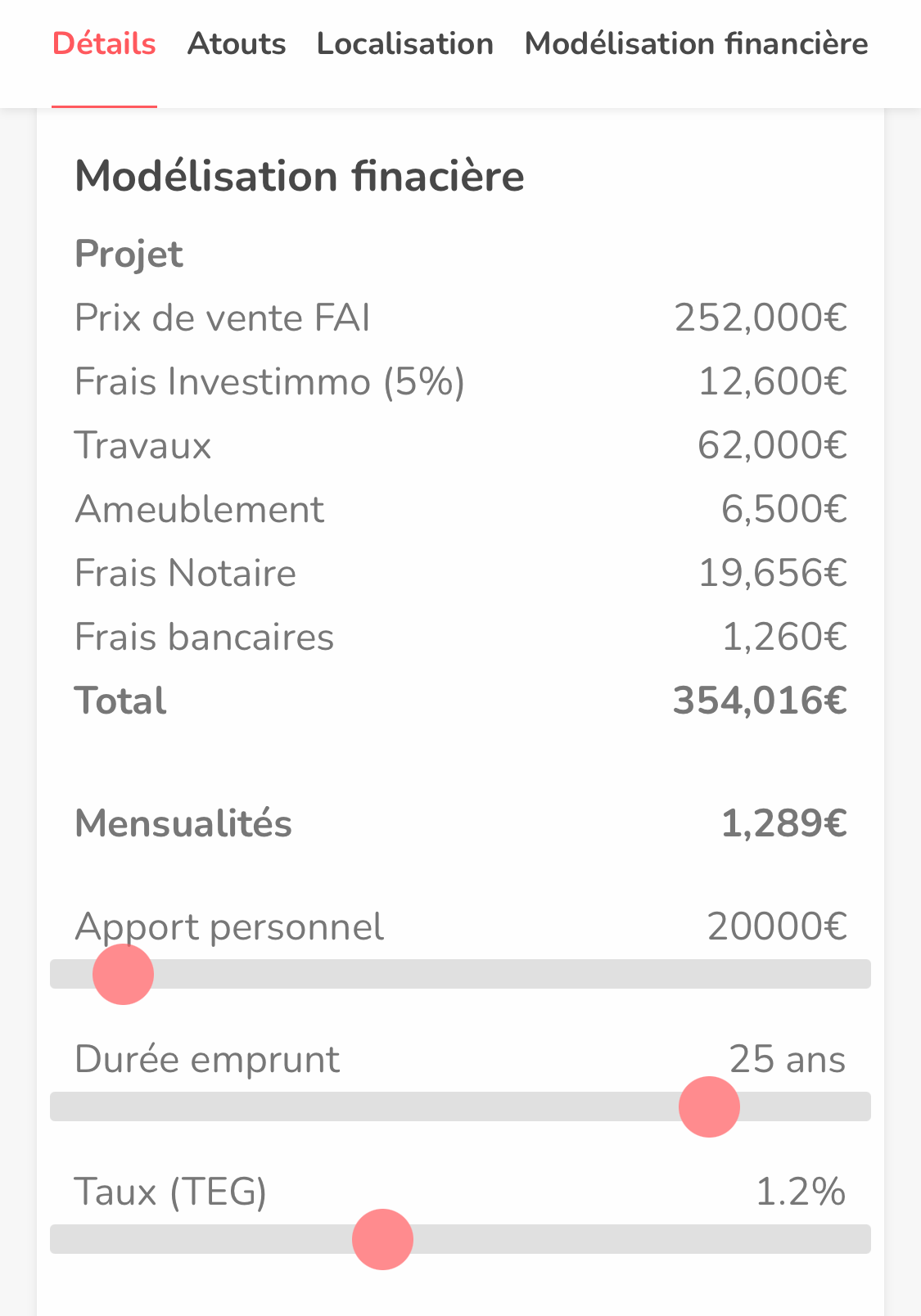 Notre outil vous permet de simuler rapidement votre projet d'investissement en prenant en compte l'ensemble des revenus et des coûts liés au projet.